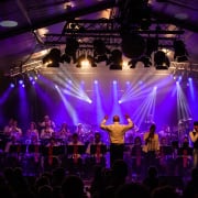 Tijdens het concert nam zowel het harmonie- als jeugdorkest van Sophia’s Lust evenals de slagwerkgroep De Volharding uit Borculo, waarmee Sophia’s Lust een nauwe samenwerking onderhoud, het publiek mee naar het theater op Broadway. En daar hoorde ook een lekkernij bij. Iedere bezoeker kon een bakje ‘knabbelnootjes’ mee naar de tot theater ingerichte concertzaal nemen.